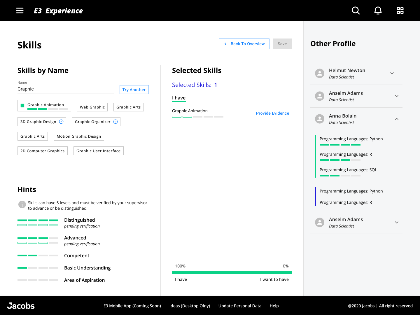 A dedicated skill section has been designed to enhance collaboration within the company.